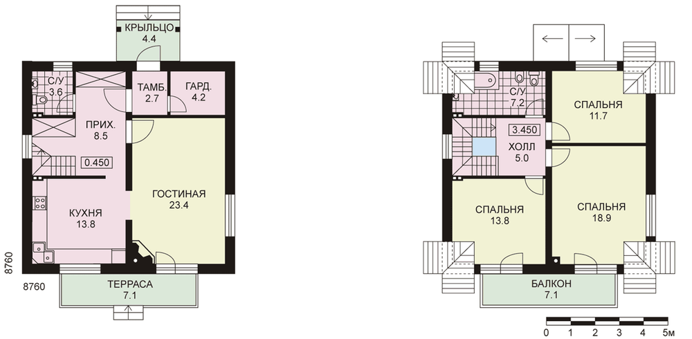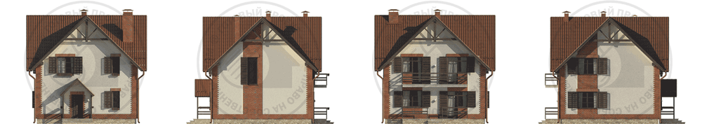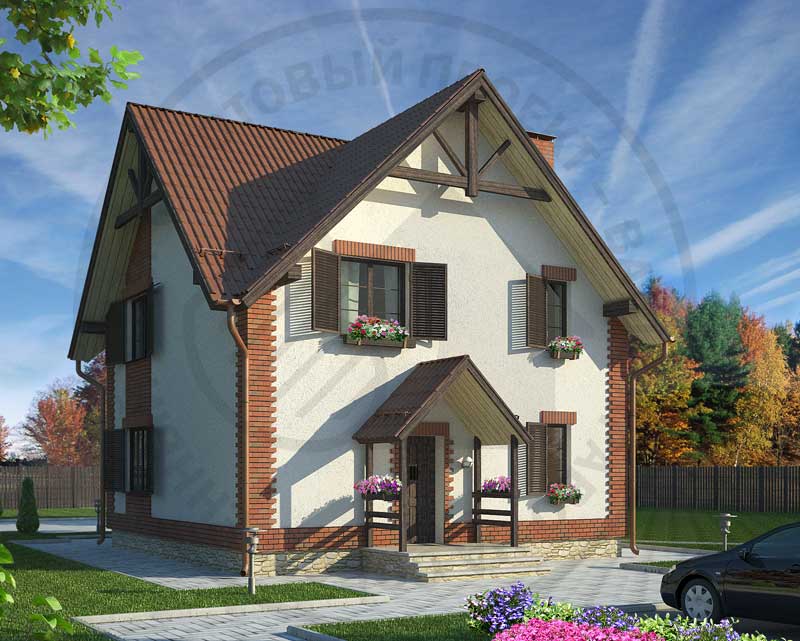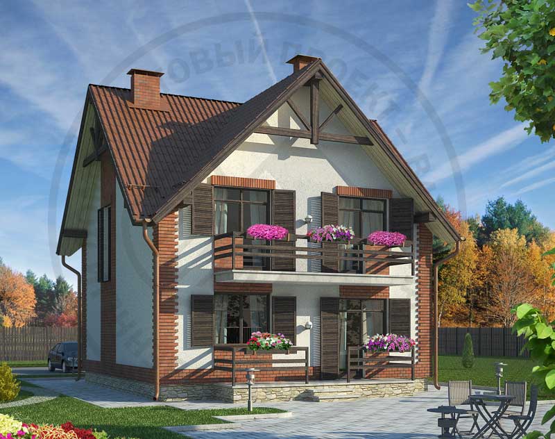 Компактный небольшой коттедж, в стиле альпийских домов, может служить также домом для сезонного проживания. Рациональность планировочного решения делают этот дом экономичным и пригодным для строительства в любой среде. Помещения первого этажа компактно размещены вокруг прихожей. Набор стандартных помещений позволит с комфортом расположиться хозяевам и гостям дома. Большая гостиная имеет двустороннюю ориентацию и сообщается с кухней. В тихой зоне мансардного этажа расположены три спальни и ванная комната.