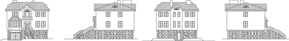 Особняк в строго классической традиции для солидных заказчиков, ценящих комфорт и роскошь, но без излишней претенциозности. В планировке дома отчетливо прослеживаются две условно независимые жилые зоны – справа и слева от оси главного входа. Помещения расположены таким образом, что обитатели правого и левого крыла могут жить практически автономно. Едиными же для этих звеньев являются кухня и ванные, а также помещения цокольного этажа: гараж, сауна, подсобные помещения. Особняк такого рода имеет смысл строить в первую очередь семье, состоящей из нескольких поколений. Классические, всегда актуальные фасады сделают этот дом современным независимо от смены стилей и архитектурной моды. А рациональный подход к объемно-планировочному решению обеспечит и достаточную экономичность.