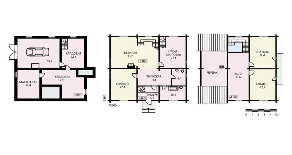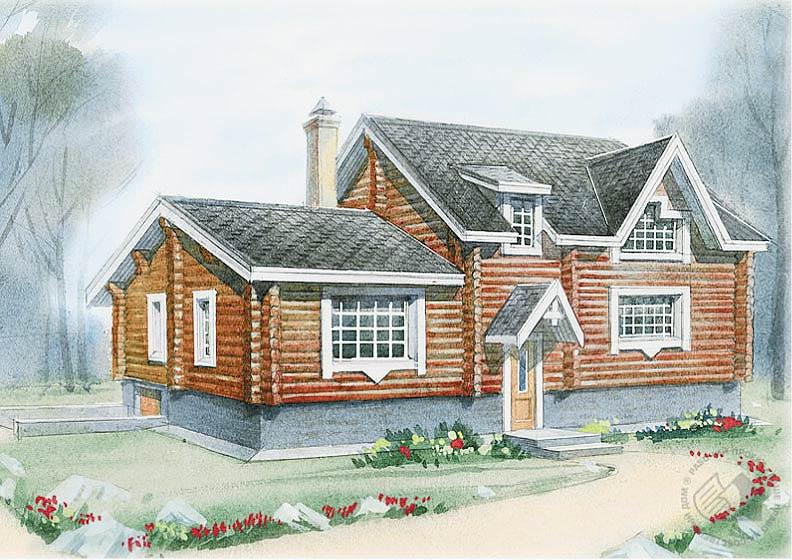 Традиционный бревенчатый дом, основными достоинствами которого являются экологичность и экономичность. Большая семья сможет с комфортом жить в нем круглый год или использовать его как сезонное жилище. На первом этаже находятся просторная прихожая, кухня-столовая, жилая комната, гостиная – все предельно просто и рационально. Авторы проекта нашли возможность внести некоторые новшества в пространственные решения рубленого дома. Гостиная решена как часть единого пространства холла-прихожей. Конструктивная жесткость внутренней несущей стены при этом не нарушается, так как связь гостиной и холла осуществляется через большой проем. В мансарде находятся две большие спальни. При нехватке жилых помещений вполне возможно организовать дополнительную спальню на части холла.