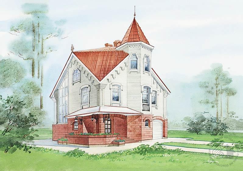 Предлагаемый трехуровневый, квадратный в плане коттедж разработан в достаточно нетрадиционной для данного типа сооружений конструктивной схеме – жестком стальном каркасе. Эта конструкция устанавливается на сплошную ребристую ж/б платформу основания и работает совместно с замоноличиваемыми прямо на месте ж/б перекрытиями. Наружные стены, таким образом, являются самонесущими, на первом этаже – газобетонные, выше – каркаснообшивные с эффективным утеплителем. Планировка дома достаточно традиционна. На первом этаже находятся гараж на два автомобиля, котельная и зона релаксации. Второй уровень – зона дневного пребывания и третий – интимная зона дома. Замысловатая форма спален может быть упрощена за счет подвижки перегородок.