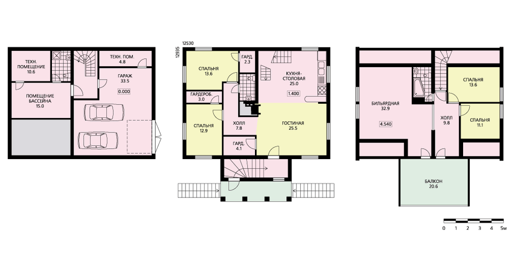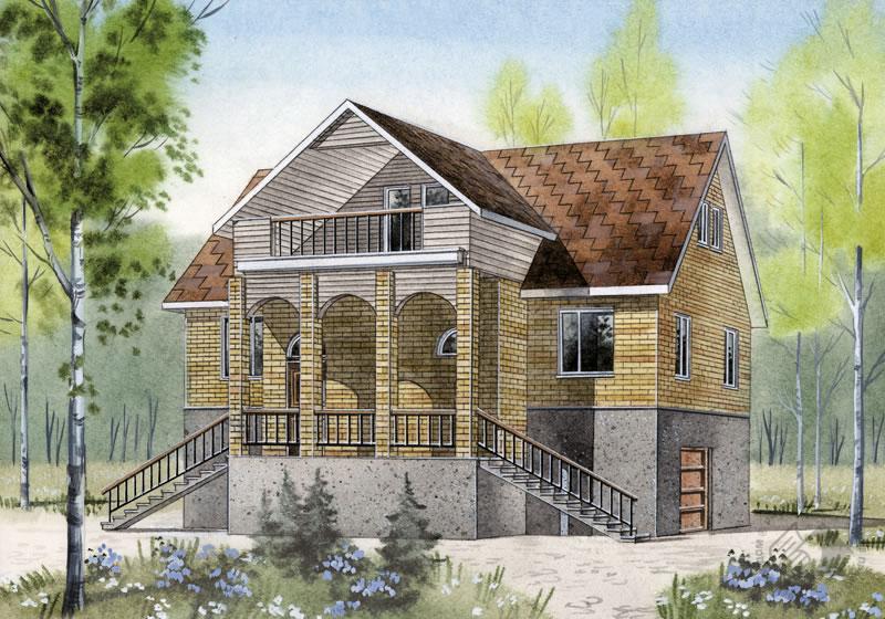 Вместительный, комфортабельный коттедж, рассчитанный на постоянное проживание многочисленной семьи. Объемно-планировочное решение дома достаточно лаконично. При этом дом имеет ярко выраженный уличный фасад, который хорошо впишется в линию уличной застройки. Вход в дом высоко приподнят над землей и оформлен порталом в итальянском стиле. Цокольный этаж, расположенный на уровне земли, полностью отдан под технические и служебные помещения. Первый этаж поделен между спальной и гостевой зонами дома. Гостевая зона – единое пространство с камином и открытой лестницей на мансарду. Спальная зона с двумя спальнями, гардеробными, санузлом и собственным холлом комфортабельна и очень удобна для старших членов семьи. На мансарде предлагается разместить две спальни и большую бильярдную.