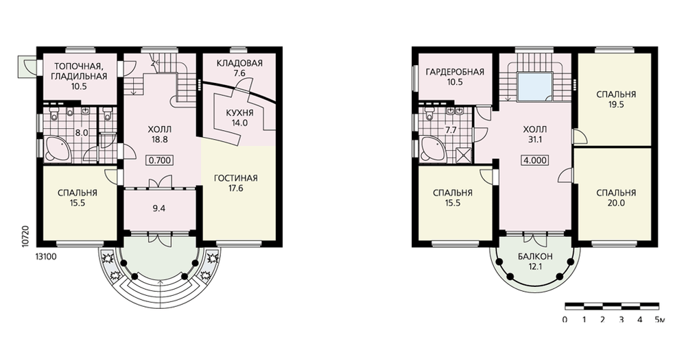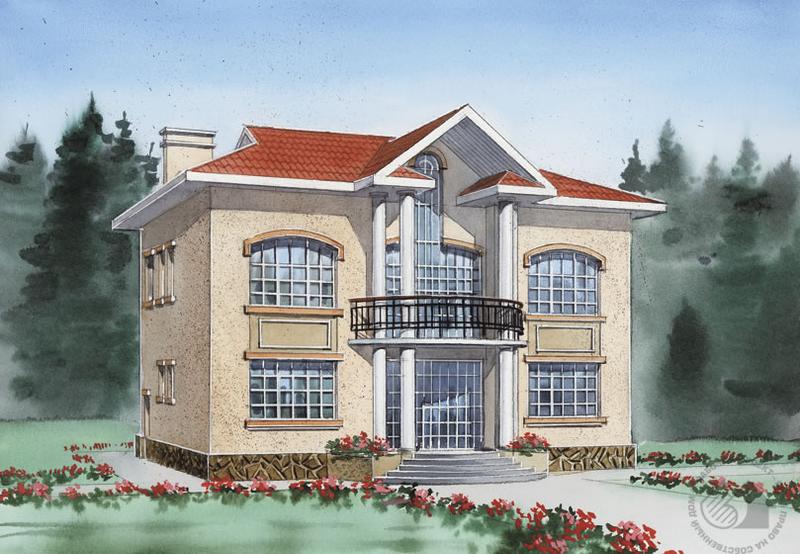 В этом небольшом симпатичном доме, решенном в классических традициях, органично сочетаются традиционные и современные черты. Строго симметричным фасадам соответствует такая же симметричная внутренняя планировка. Трехчастному членению фасадов отвечает трехпролетная поэтажная планировка. На первом и втором этажах центральный пролет занимают холлы, по сторонам от которых расположены жилые и служебные помещения дома. На первом этаже холл соединен с гостиной через большой открытый проем, образуя с ней единое пространство. На втором этаже вокруг большого светлого холла группируются три спальни, гардеробная и ванная комната. Сам холл может служить диванной или игровой. Площадь и естественное освещение гардеробной позволят использовать ее как жилую комнату.