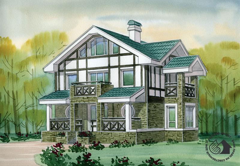 Проект дома для эстетов, с изящными, тонко прорисованными фасадами, великолепно продуманной отделкой и логичной, рациональной планировкой. В таком доме удобно и приятно жить, в такой дом хочется приглашать гостей. Проектом предусмотрены три этажа, включая мансардный. Основной вход организован сбоку от главного фасада, он оформлен в виде небольшой арки, создающей ощущение уюта и комфорта. Первый этаж решен в двух уровнях. На нижнем расположены прихожая и гардеробная, гостевые помещения – на возвышении. Гостиная с эркером и камином имеет еще и дополнительный выход через террасу. На фасаде он очень красиво оформлен порталом со столбами-колоннами. На втором этаже запроектирована спальная зона. Ее планировка может быть откорректирована по усмотрению владельцев дома, так как частично решена в перегородках. На промежуточном уровне находится веранда. Использование мансарды – по усмотрению хозяев дома.