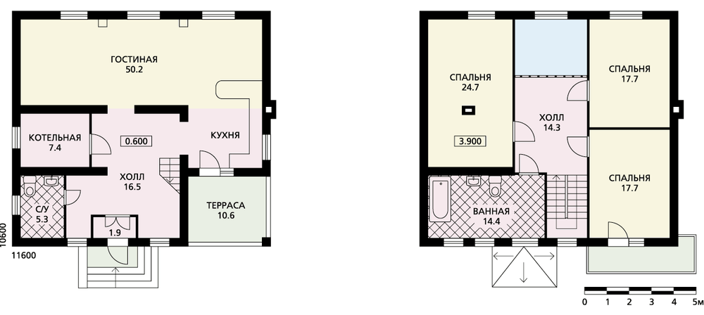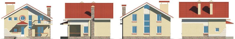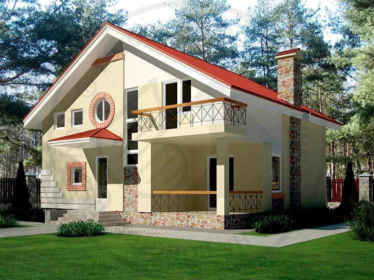 Дом экономкласса, в решении планировки и объема которого заложен принцип рациональности и экономичности. В основе четкий, почти квадратный план без сложных выступающих элементов. Простая двускатная кровля значительно удешевляет строительство, как, впрочем, и лаконичная внутренняя планировка. При этом в проекте предложено достаточно выразительное, привлекательное решение фасадов. Такой своеобразный дом-игрушка. Подвала в нем нет, небольшой чердак не эксплуатируется. На первом этаже большую часть площади занимает гостиная, совмещенная с кухней, к которой примыкает крытая терраса – логичное продолжение гостевого пространства на свежем воздухе. Расположенные в холле котельная и санузел дополняют планировку. В мансарде находятся три спальни и ванная комната. Небольшое окно второго света при необходимости может быть закрыто, и его либо можно присоединить к одной из спален, либо занять гардеробной.