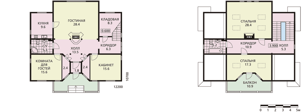 Помещения первого этажа компактно размещены вокруг холла с двусторонним камином, который также ориентирован и на гостиную. Большая гостиная – одно из главных достоинств дома, она не только удобна для отдыха семьи, но и способна вместить большую компанию гостей. В тихой зоне мансардного этажа расположены две спальни, одна из которых имеет выход на балкон, и ванная комната.
