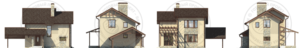Лаконичный коттедж, аналог H-1698-0 – такой же компактный и привлекательный. Отличие только в наличии навеса для автомобиля. Важным преимуществом является исключительно эффективное использование внутреннего пространства дома: планировка предусматривает наличие всех необходимых помещений для постоянного или сезонного проживания небольшой семьи.