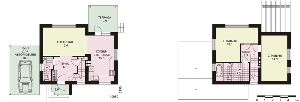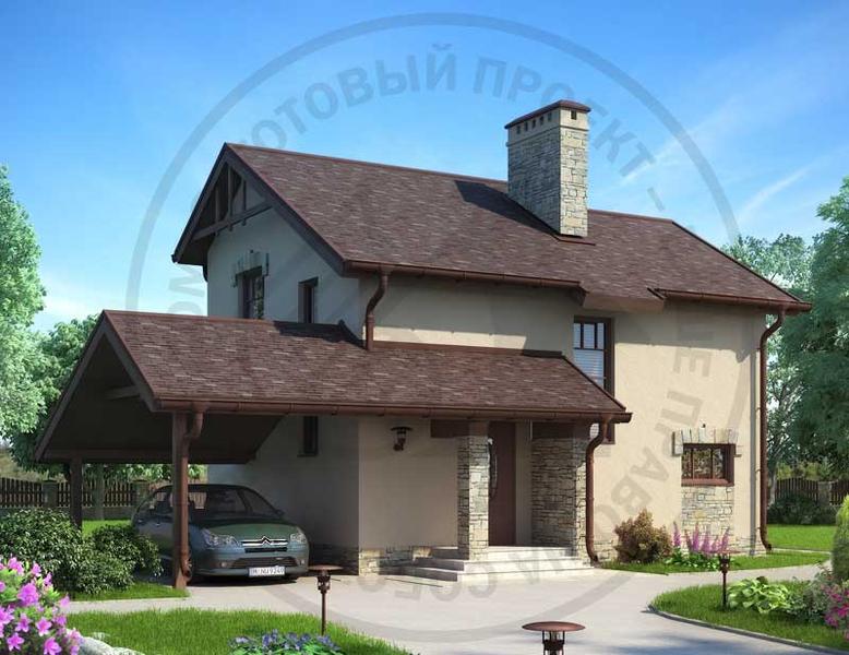 - Компактный коттедж из газобетона с навесом