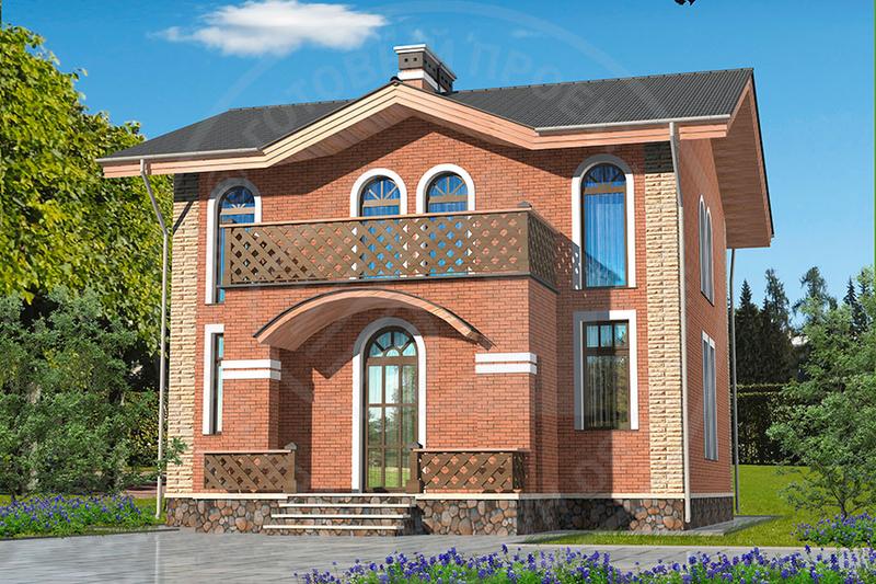 Уютный компактный коттедж со скатной кровлей, с ясно выраженным цельным симметричным объемом. Коттедж имеет выразительный главный фасад с четко обозначенным, выдвинутым вперед входом, с овальным козырьком и оригинальной просторной террасой второго этажа. Противоположный фасад, обращенный в сад, также имеет выступающую часть гостиной с террасой на втором этаже. Здание двухэтажное, без подвала и цокольного этажа. Планировка первого этажа решена с четким зонированием общего пространства, с лестницей в гостиной, ведущей на второй этаж. Светлая гостиная с камином совмещена с кухней, вместе они образуют единое пространство. В гостиной витраж с выходом на террасу сада. Из прихожей вход в техническое помещение с газовым котлом и бойлером для горячей воды, есть санузел и кладовая. На втором этаже три уютных спальни, две имеют выход на просторную террасу, обращенную в сад., Из холла второго этажа выход на вторую террасу над главным входом. На этаже одна удобная ванная комната.