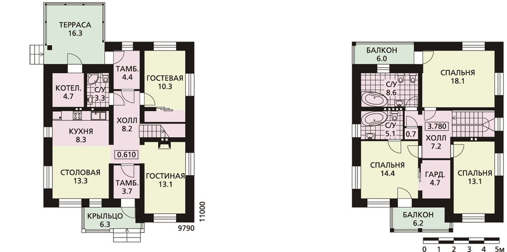 Аналог популярного проекта G-3027-1, отличающийся наружной отделкой и практически идентичный по планировке. Проект – так же как и предшественник – рационален и экономичен за счет стеновых материалов и лаконичных конструкций. Первый этаж отдан помещениям дневного пребывания: кухне-столовой и гостиной в одной половине и техническим помещениям и гостевой в другой. Второй этаж – приватная зона, состоящая из трех спален и двух ванных комнат.