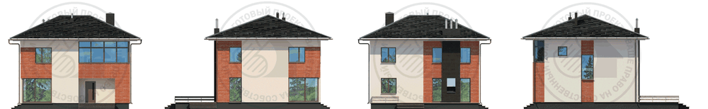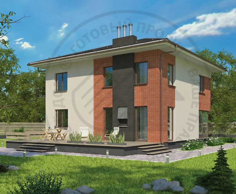 Лаконичный облик, оптимальная конструктивная схема и рациональность планировочного решения делают этот дом экономичным и пригодным для строительства на любом участке. Помещения первого этажа компактно размещены вокруг холла-прихожей и имеют двустороннюю ориентацию. Это позволяет более свободно ориентировать дом по сторонам света при посадке на участке. Просторная гостиная – одно из главных достоинств дома, она не только удобна для отдыха семьи, но и способна вместить большую компанию гостей. Из гостиной есть выход на обширную террасу, где в теплое время можно приготовить барбекю. В тихой зоне второго этажа расположены три спальни и большая ванная комната. В отличии от проекта H-3073-1, терраса этого дома находится сбоку.