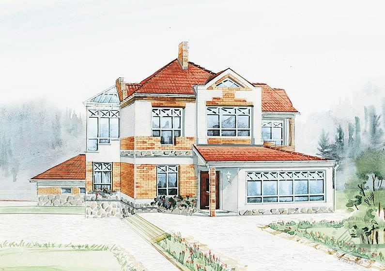 Просторный двухэтажный особняк может стать удобным жилищем состоятельных владельцев или загородной резиденцией небольшой фирмы. Он привлечет к себе особое внимание приверженцев здорового образа жизни, всю площадь подвального этажа занимает зона релаксации. В доме предусмотрено поэтажное зонирование: первый этаж – зона дневного пребывания; второй – спальни; мансарда – помещение досуга; в подвале – блок релаксации. Площадь пристраиваемого гаража при необходимости может быть изменена в сторону увеличения или уменьшения.