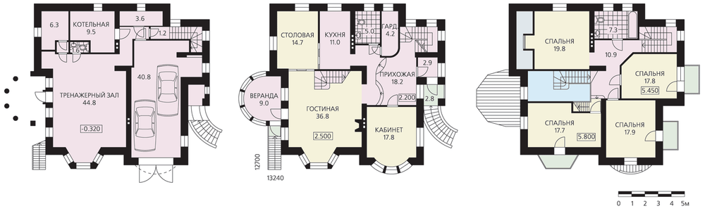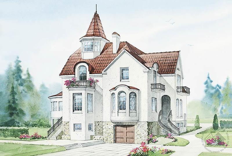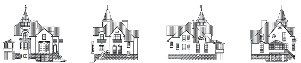Необычный, очень красивый дом, чем-то напоминающий средневековый замок. Сложный силуэт высокой крыши с башенкой, разнообразные эркеры и оконные проемы – все это создает своеобразие внешнего облика дома и делает его неповторимым. Внутреннее пространство не менее разнообразно и может соответствовать самым разным сценариям жизни будущих владельцев. Вместе с тем планировка может быть изменена в соответствии с конкретными потребностями семьи. Наличие одной внутренней несущей стены дает определенную свободу в перепланировке. Две внутренние лестницы наверняка подтолкнут владельцев к творческому освоению будущего жилища.