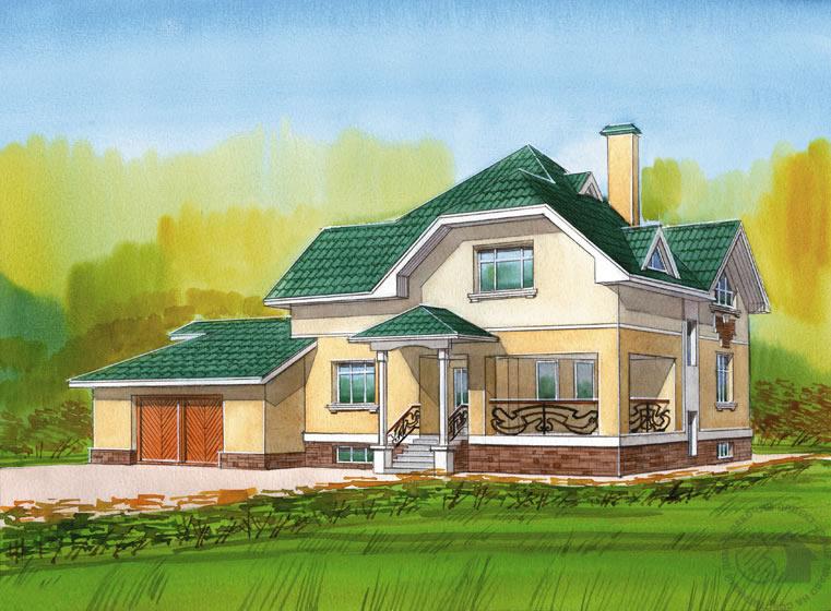 Комфортабельный коттедж с изысканными, тонко прорисованными фасадами позволит удачно вписать его в городскую среду или исторический пригород большого города. Своим архитектурным решением, пластикой фасадов он напоминает особняки начала ХХ века. А декоративные элементы, выполненные в стиле модерн, еще более усиливают это ощущение. В доме два жилых этажа и технический подвал. Первый этаж функционально и планировочно поделен на жилую и служебную зоны. С одной стороны, эти зоны независимы и самостоятельны, с другой – имеют удобную связь между собой. Мансардный этаж полностью отдан спальной зоне дома. Если трех расположенных здесь спален окажется недостаточно, то на месте большого светлого холла можно оборудовать еще одно жилое помещение.