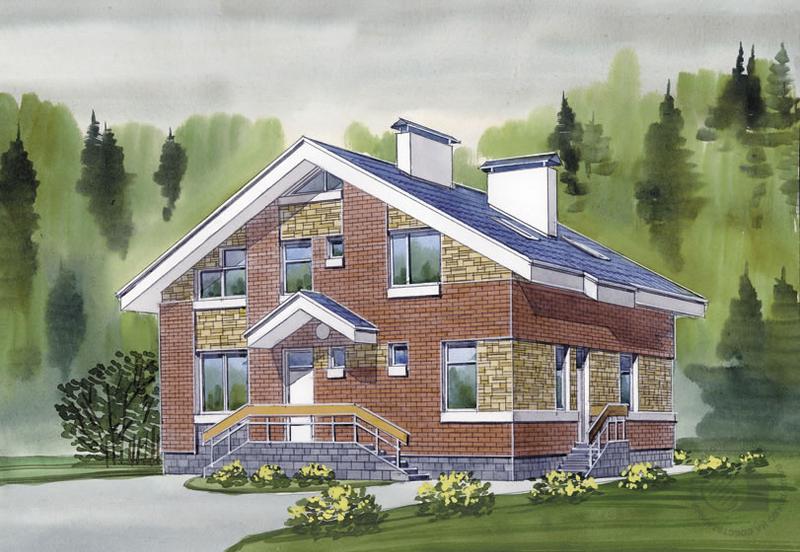 - Кирпичный коттедж с мансардой