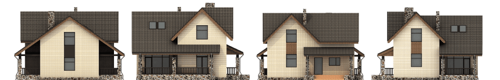 Одноэтажный дом с мансардой ориентирован на небольшую семью. Он отличается простотой формы и удобной планировкой. А сочетание с недорогими материалами и рациональным конструктивным решением делают его недорогим и доступным жильем. Подвал и чердак отсутствуют. Но предусмотренных по проекту помещений вполне достаточно для комфортной жизни семьи. На первом этаже расположены гостиная, кухня и котельная. Гостиная имеет трехстороннее освещение, часть гостиной двусветная с дополнительным освещением через окна верхнего света. Такое решение не только делает ее более светлой, но и формирует интересное интерьерное пространство. В мансарде расположены три спальни и ванная комната. Небольшой и достаточно простой объем дома очень привлекателен снаружи. Это достигается за счет точных пропорций фасадов и качественных отделочных материалов, применение которых по проекту вариативно.