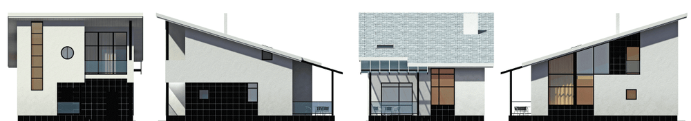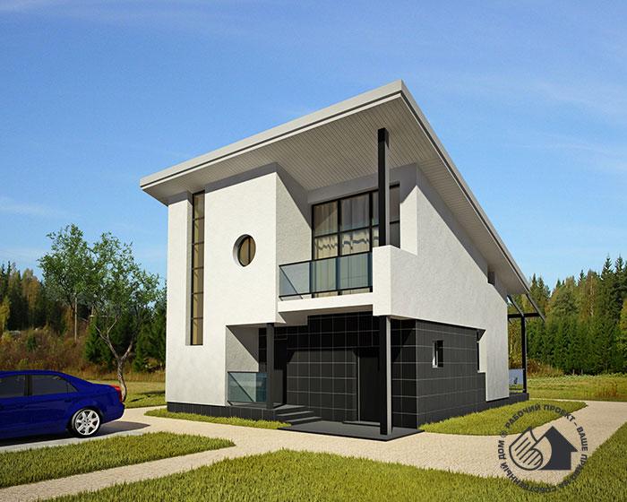Дом с односкатной кровлей – характерный пример постройки экономкласса. Но небольшая площадь и лаконичное объемно-планировочное решение не помешали создать удобное, современное жилье для немногочисленной семьи, и что очень важно, вполне доступное. Такие дома с успехом могут использоваться не только для частного заказчика, но и для реализации государственных программ доступного жилья. В доме один этаж и мансарда, подвал и чердак отсутствуют. Планировка традиционна для домов такого класса. На первом этаже расположены гостиная и кухня-столовая. Это смежные помещения, разделенные арочным проемом. Из кухни-столовой можно выйти на улицу. Удобно решен входной холл с гардеробной. Небольшая котельная изолирована от жилой части дома и имеет свой выход на улицу. В мансарде расположены две спальни и ванная комната. Они выходят в небольшой лестничный холл. Спальня родителей оборудована гардеробной и имеет балкон.