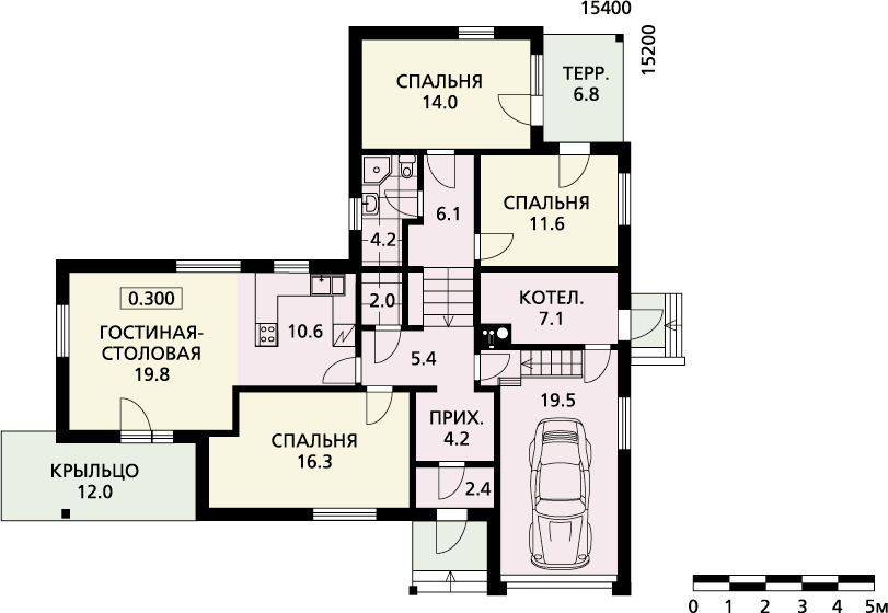 Одноэтажный брусовой утепленный домик на рельефе оптимально подойдет для сезонного проживания семьи из четырех человек. Три удобных спальни, два санузла и совмещенная со столовой гостиная с камином сделают пребывание в этом уютном коттедже очень комфортным в любое время года.