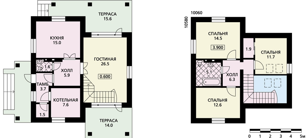 Одноэтажный коттедж с мансардой станет отличным выбором для небольшой семьи. Его характеризуют простота формы и рациональная планировка. Подвал и чердак не запланированы. На первом этаже запроектированы гостиная, кухня и котельная. Гостиная имеет трехстороннее освещение, ее часть двусветна с дополнительным освещением через окна верхнего света. В мансарде расположены три спальни и ванная комната. Крупноформатный керамический кирпич, использующийся для возведения наружных стен, позволит дому повысить свои теплотехнические свойства и создать систему естественной вентиляции.