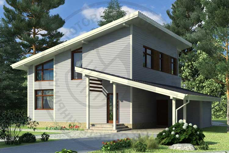 - Каркасный коттедж с односкатной крышей