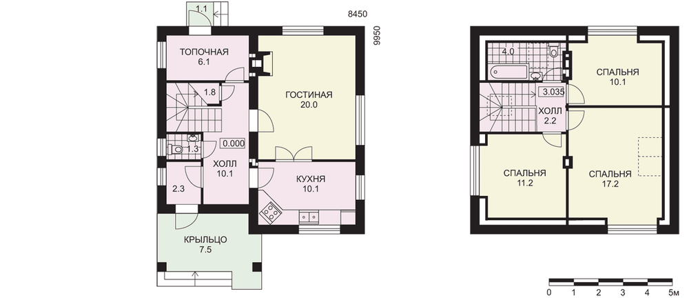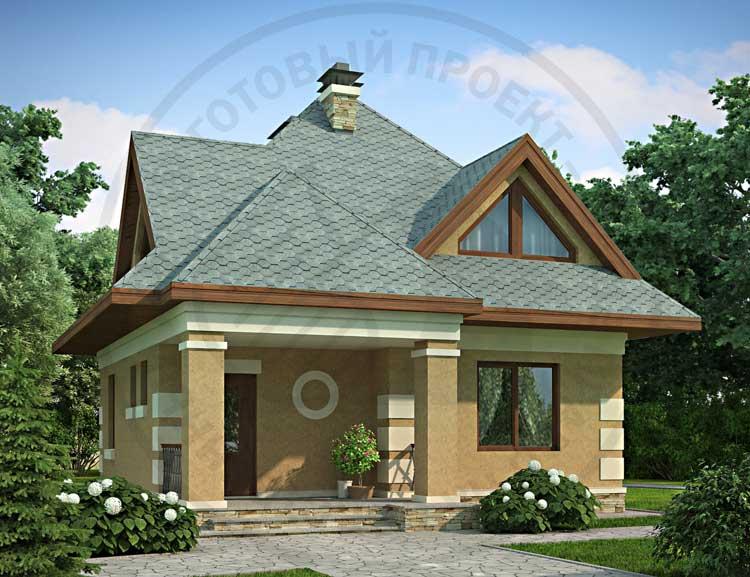 Небольшой экономичный загородный дом, который отлично впишется даже на небольшой участок. В плане он представляет собой квадрат со стороной чуть больше 8 метров, несколько выдается лишь крыльцо, выступающее на 1,5 м.