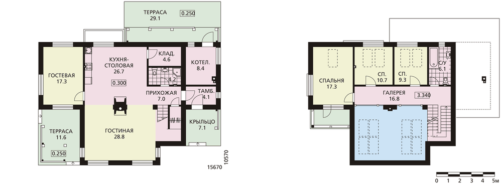Конструктивная схема, заложенная в этом экономичном проекте, не предполагает больших возможностей для перепланировок, однако не ограничивает заказчика в выборе назначения помещений. Зато такой коттедж предполагает широкие возможности привязки к местности – в зависимости от видовых характеристик и конфигурации участка. Он без проблем может быть прижат к одной из границ домовладения – по заднему фасаду сосредоточены в основном вспомогательные помещения первого этажа и спальни второго. Вход в дом организован с угла, что удобно при размещении здания по одной из границ участка. Однако в случае необходимости застройки с видом на обширный участок или озеро входная зона может быть перенесена на задний фасад, который в этом случае может вполне стать главным. При такой компоновке сам дом может размещаться в самом начале участка, на минимальном удалении от дороги.