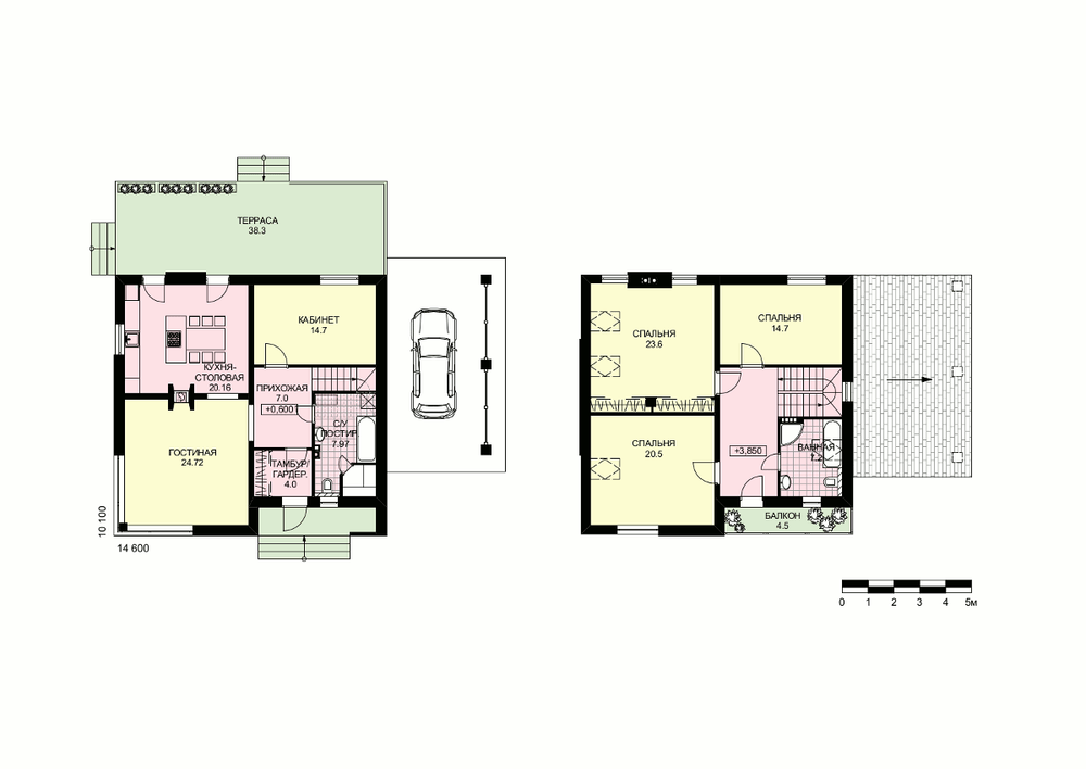 Небольшой симпатичный коттедж с большой террасой и навесом для машины. Современная комфортная и абсолютно рациональная планировка, лаконичные, лишенные излишеств фасады делают дом доступным и желанным жильем для небольшой, требовательной к уровню комфорта семьи. В доме два жилых этажа. На первом традиционно расположены гостиная с двусторонним камином, кухня-столовая, кабинет и технические помещения. На втором этаже находятся три спальни, ванная комната и холл, из которого можно выйти на балкон.