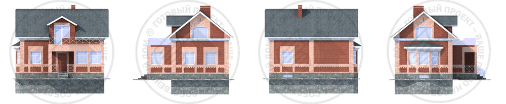 Компактный, предельно экономичный одноэтажный дом с мансардой и подвалом. В планировочном решении дома все просто и функционально: тамбур главного входа – веранда, откуда можно попасть в прихожую, вокруг которой сгруппированы все помещения первого этажа: гостиная, кухня, столовая и санузел. Кухня и столовая составляют единое пространство. Гостиная имеет двустороннее освещение и остекленный эркер. В мансарде находятся две большие спальни и ванная комната. Из лестничного холла можно выйти на террасу, расположенную над верандой. В подвале, в который ведет лестница с первого этажа, размещены подсобные и хозяйственные помещения.