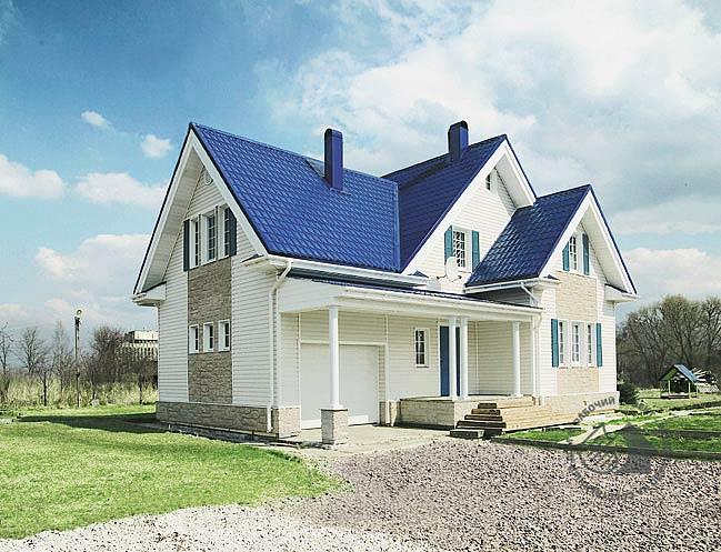 Небольшой, уютный, экономичный дом, в котором есть все необходимое для комфортного проживания семьи. Гармоничные фасады, так же как и объем всего дома в целом, соответствуют представлению о престижном жилище. Цветовое решение отдельных элементов фасада может быть изменено по желанию заказчика. Привлекательность облика дома удачно сочетается с экономичностью, обусловленной компактностью плана, особенностями планировки, отсутствием подвала, материалом наружных стен. Авторы предлагают экономичную конструкцию наружных стен. Стены первого этажа обшиты изнутри гипроком, а снаружи – виниловой вагонкой по влагостойкой фанере. Планировка дома достаточно традиционна и обеспечивает высокий уровень комфорта.