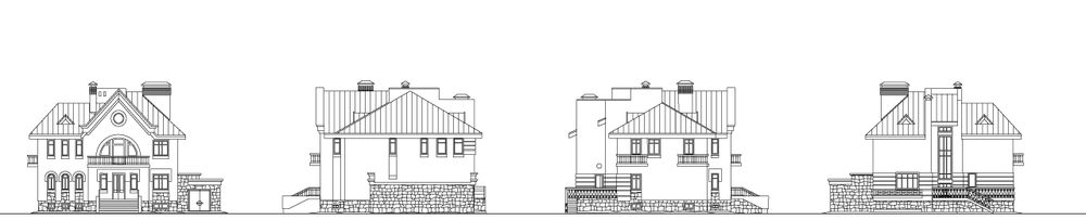 Вместительный, респектабельный и очень красивый особняк для состоятельных владельцев. Он имеет ярко выраженный уличный фасад и особенно удачно впишется в городскую среду коттеджной застройки. Широкая, почти дворцовая лестница ведет на первый этаж. Из небольшого холла можно попасть в просторную гостиную, кухню-столовую и жилую комнату, которая может служить кабинетом, гостевой или спальней старших членов семьи. Из гостиной и кухни-столовой можно выйти на большую открытую террасу и спуститься в сад. На втором этаже расположены четыре спальни, две ванные комнаты и детская. Практически вся площадь цокольного этажа отведена под зону релаксации с просторным, светлым спортзалом. К жилому объему дома пристроен гараж, попасть в который можно по лестнице из цокольного этажа.