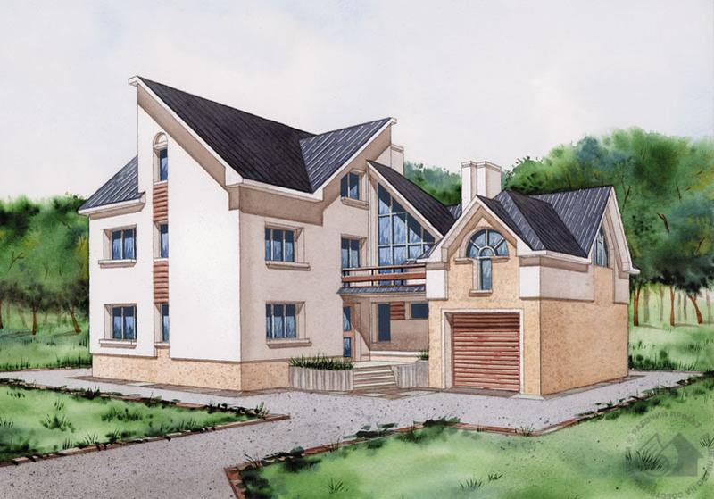 - Двухэтажный особняк с мансардой