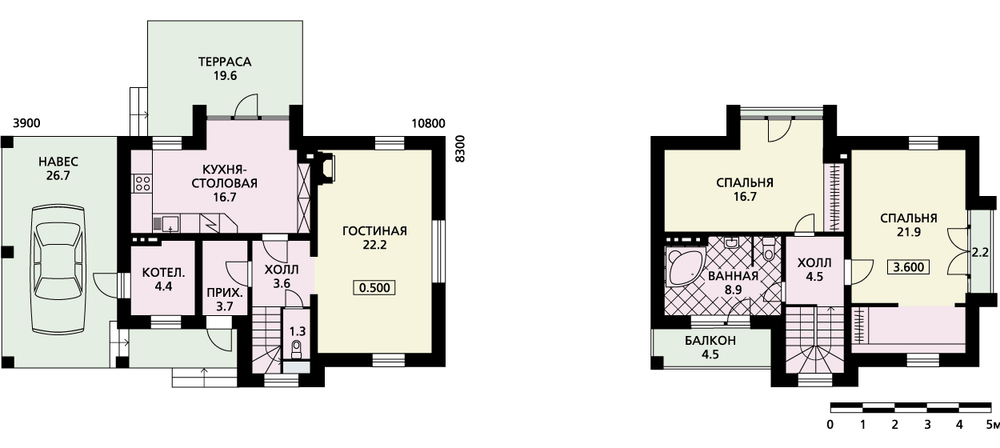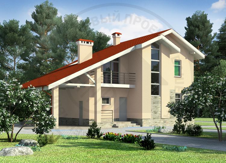 - Компактный дом с навесом для машины