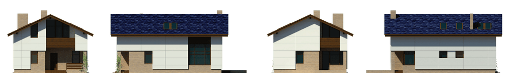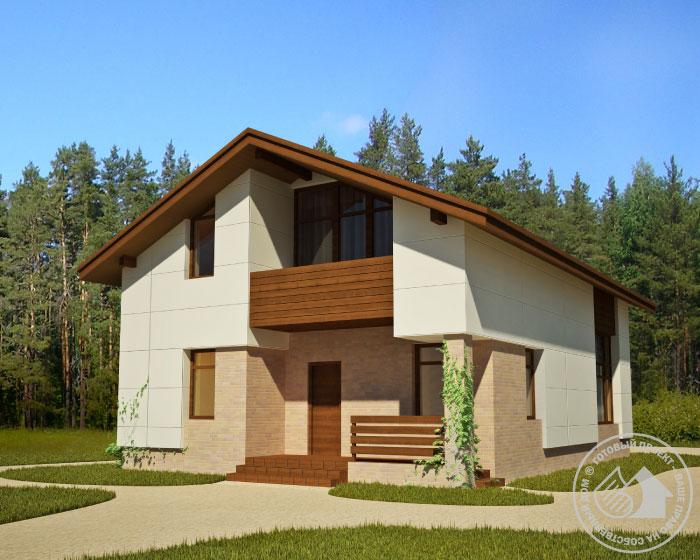 Небольшой каркасный дом с лаконичным, при этом современным и достаточно выразительным внешним обликом. Это сооружение нового поколение, не имеющее ничего общего с убогими каркасными домами-сарайчиками советского периода. Предложенная проектом планировка удобна, рациональна, а в сочетании с конструктивным решением еще и экономична. В доме нет подвала и чердака, по максимуму используется весь объем, включая подстропильное пространство. Кроме того, компактный, вытянутый план позволит посадить такой дом на небольшой, узкий участок. На первом этаже основную часть площади занимает гостевое пространство, объединившее гостиную, кухню и столовую. Остальная площадь поделена между спальней, котельной и ванной комнатой, сгруппированными вокруг небольшого холла. На втором - мансардном этаже расположены еще две спальни, каждая оборудована гардеробной, имеет лоджию, а одна еще и сблокирована с кабинетом, который впрочем, может служить и будуаром.