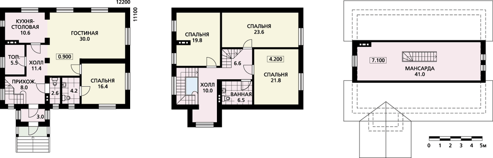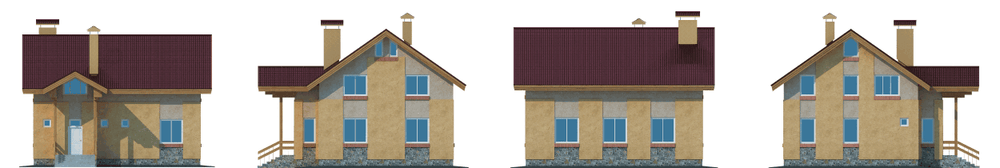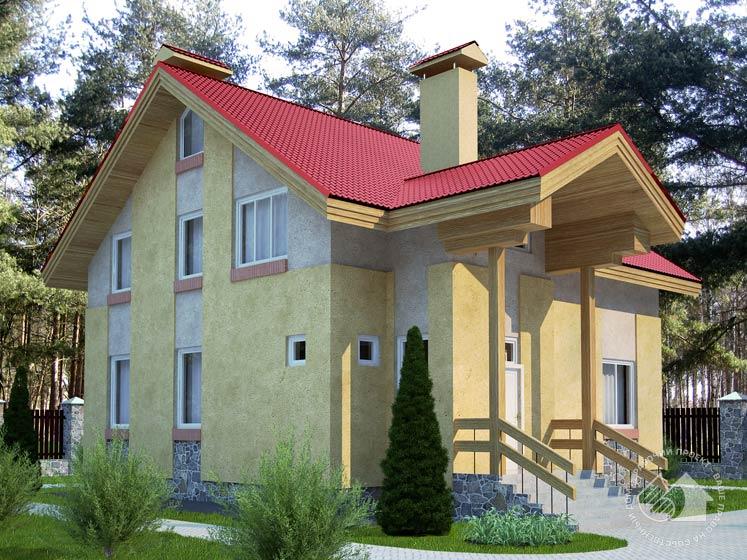 Компактный, рациональный дом с нейтральным архитектурным решением. Он легко впишется в любую архитектурную или природную среду. Проектом предусмотрены два этажа и небольшая мансарда. Входной тамбур вынесен за границы основных габаритов дома. Площадь же самого дома используется максимально рационально. На первом этаже, кроме традиционных гостевых помещений, запроектирована угловая спальня. Она очень удобно сблокирована с ванной комнатой. Гостевые помещения, представленные гостиной, кухней-столовой и холлом, решены в одном объеме, что дает возможность получить большое, светлое пространство. На втором этаже размещены еще три компактно сгруппированные спальни. Планировка этажа выполнена в перегородках, а это открывает возможность ее корректировок. В данном случае можно изменить габариты помещений или выделить площади под гардеробные или кладовые. Назначение мансарды определят владельцы дома, проектом оно не определено.