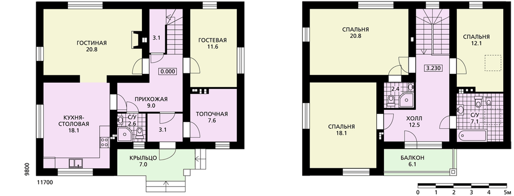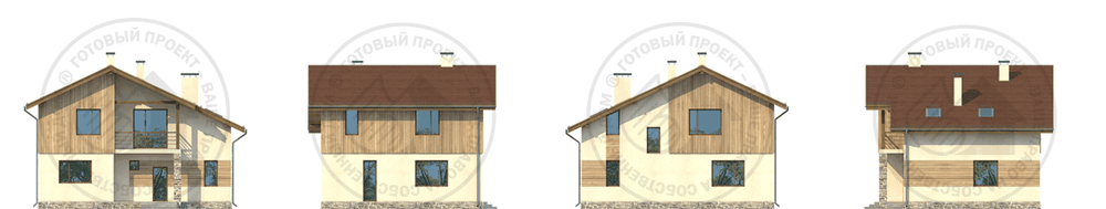 Гармоничность внешнего облика, небольшое пятно застройки при существенном выходе жилой площади – далеко не единственные достоинства этого дома. В основе здания лежит простой прямоугольный план жилой части. Из небольшой центральной прихожей можно попасть во все помещения дома. В мансардном этаже вокруг холла сосредоточены три спальни и два санузла.