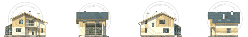 Небольшой дом из газобетона с лаконичным, при этом современным и достаточно выразительным внешним обликом. Проект характеризуют предельная функциональность и эргономичность в планировке и архитектурных решениях, а также небольшое пятно застройки, что позволяет значительно снизить стоимость дома при строительстве. Предложенная проектом планировка удобна, рациональна. В доме нет подвала и чердака. На первом этаже основную часть площади занимает гостевое пространство, объединившее гостиную, кухню и столовую. На втором - мансардном этаже расположены еще три спальни, две ванные комнаты, а на балкон можно попасть из холла.