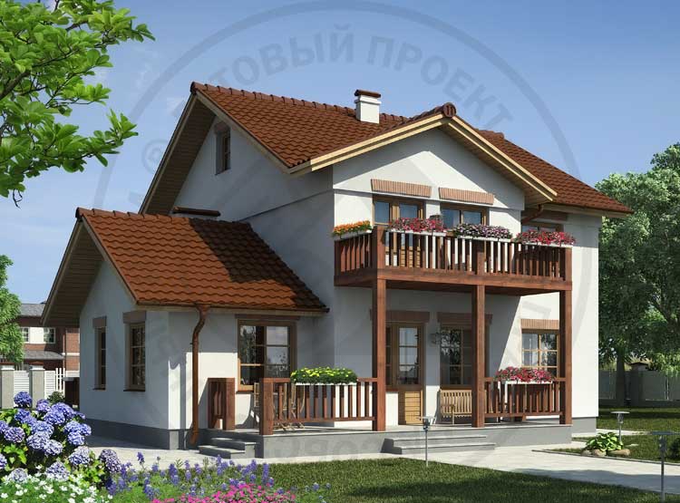 Традиционные для северных стран очертания этого небольшого дома из газобетона скрывают в себе много возможностей. Характерная комбинация светлых штукатурных стен и коричневой металлической крыши относят его к городской или пригородной застройке. Но достаточно применить широкий горизонтальный сайдинг (блокхаус) в качестве вентилируемого фасада и битумную черепицу на кровле, чтобы этот коттедж органично вписался в среду дачного поселения. Архитектурное решение фасадов не требует применения тяжелых отделочных материалов и дает возможность утеплять дом в соответствии с потребностями региона строительства.