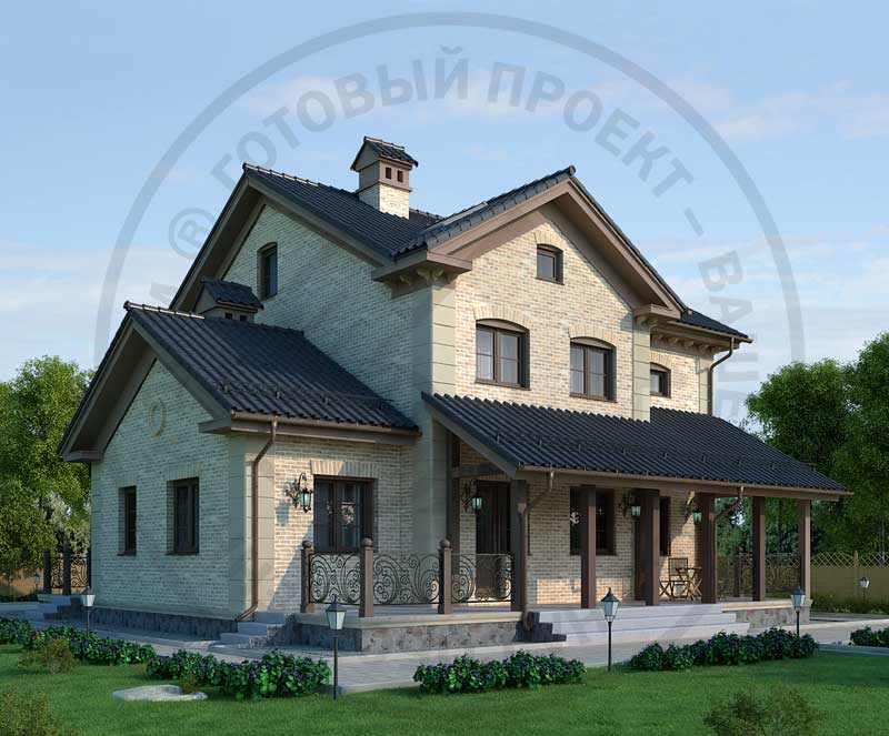 Вариант решения стеновых материалов и фасадной отделки одного из популярных проектов – L-3028-0. В качестве стенового материала запроектирован крупноформатный поризованный кирпич, а классический цвет кирпича заменен на светлый. Планировка же осталась прежняя. На первом этаже расположены технические помещения, кухня-столовая, сообщающаяся с просторной гостиной, гостевая и комната отдыха. Второй этаж отдан под четыре спальни и санузлы. На мансардном этаже, на площади 44 квадратных метра можно устроить просторную зону отдыха: разместить бильярдные и теннисные столы, домашний кинотеатр и пр.