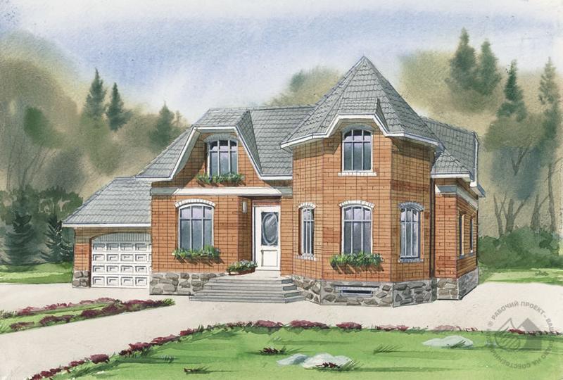 Просторный, вместительный особняк, решенный в лучших традициях загородного домостроения. Традиционным является не только внешний вид дома, но и его поэтажное зонирование. В подвале расположены складские помещения, топочная и огромный тренажерный зал. При желании здесь можно оборудовать полноценную зону релаксации. На первом этаже находятся помещения дневного пребывания семьи: гостиная, столовая, кухня, небольшой кабинет. Все помещения очень удобно связаны между собой. В мансардном этаже – три спальни и ванная комната. Планировка этого этажа, выполненная в перегородках, может быть откорректирована по желанию хозяев дома. В проекте дом представляет собой блокировку двух независимых объемов: жилой части и гаража. Такое конструктивное решение позволяет вести поэтапное строительство или совсем отказаться от гаража не в ущерб конструктивной целостности и внешнему облику дома.