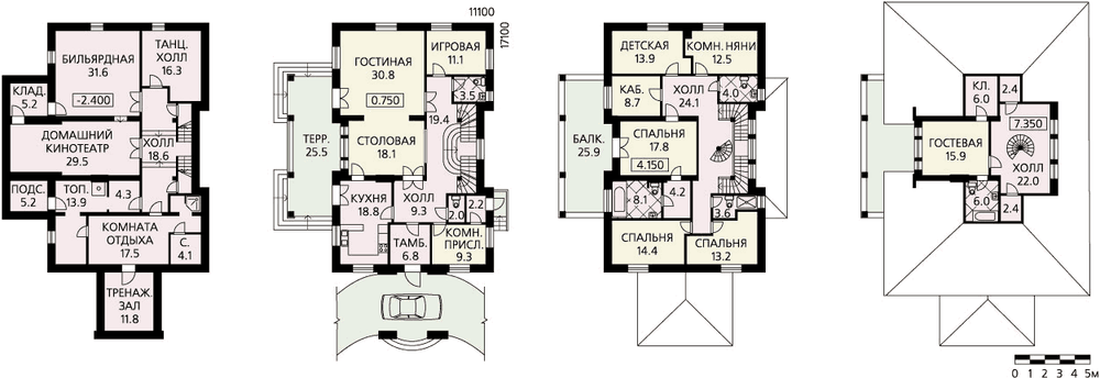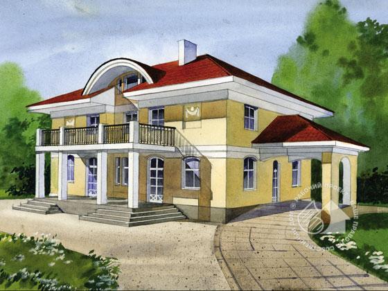 Фешенебельный особняк с повышенным уровнем комфорта для состоятельных заказчиков. Симметрично решенные с элементами классики фасады создают ощущение стабильности и основательности. В доме два жилых этажа, цокольный этаж и небольшая мансарда. Каждый из этажей имеет максимальное функциональное наполнение. В цоколе наряду с традиционно техническими помещениями размещены бильярдная, тренажерный зал и домашний кинотеатр. Последний спроектирован по всем правилам зрительных залов с повышением уровня пола. Первый этаж – парадная часть дома с просторными гостиной и столовой и удобно расположенной кухней. Огромная крытая терраса естественное продолжение этого пространства. Второй этаж – спальная зона. Внимание привлекает спальня хозяев с гардеробной, просторной ванной комнатой и огромным балконом. Из холла винтовая лестница ведет на мансарду где очень уютно расположилась еще одна комфортабельно оборудованная спальня.