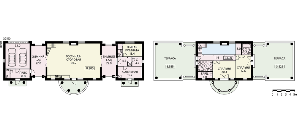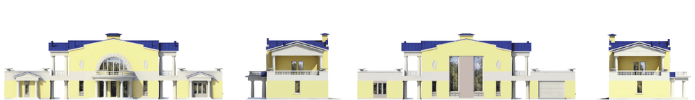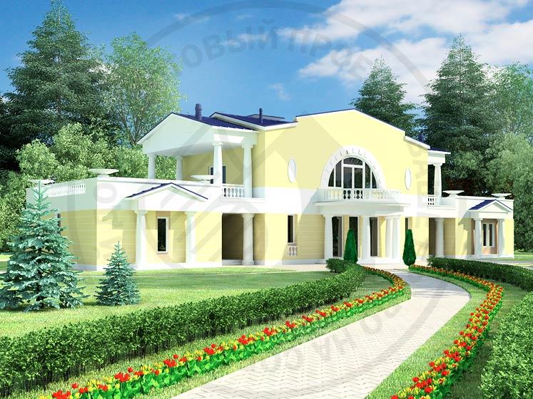 Этот необычный загородный дом для настоящего пуританина, ценящего жизнь и способного по достоинству оценить ее прелести. Стилистика здания выдержана в неоклассических архитектурных формах. Планировка задумана широко, с размахом и предполагает очень комфортное проживание небольшой семьи. Проектом предусмотрено трехчастное объемно-планировочное деление с центральным двухэтажным объемом и одноэтажными пристройками. В центральном объеме на первом этаже расположена просторная гостиная, совмещенная с кухней-столовой, на втором – две спальни со своими гардеробными и ванными комнатами. Свободная планировка первого этажа с безопорной конструктивной схемой обусловила конструктивное решение перекрытий с мощными стальными балками. В одноэтажных пристройках: слева – гараж и прихожая, справа – котельная, сауна и небольшая гостевая. От центральной части с одной и другой стороны они отделены зимними садами. Крыши пристроек представляют собой просторные террасы, на которые можно выйти из спален и холла второго этажа. Одна из спален также имеет красивый полукруглый балкон. Стандартный набор чертежей в данном проекте дополнен проектом отделки с детально проработанными узлами, шаблонами деталей и образцами цветового решения.