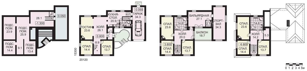 Этот дом максимально насыщен с функциональной и архитектурной точек зрения, в нем есть все необходимое для полноценной и комфортной жизни за городом благодаря продуманной планировке: в доме предельно рационально используется каждый метр площади. Подсобные помещениях подвала, в зависимости от потребностей, можно переоборудовать в мастерские, кладовые или технические помещения. Самые большие помещения первого этажа - это гостиная, холл и кухня-столовая, две спальни могут использоваться также как кабинет или гостевые комнаты. Отапливаемый гараж рассчитан на одну машину. На втором этаже расположены три спальни, бильярдная, спортзал и просторная ванная комната, в которой может быть размещена инфракрасная кабина. В мансардном этаже также расположены три спальни, любую из которых можно использовать как библиотеку или игровую комнату.