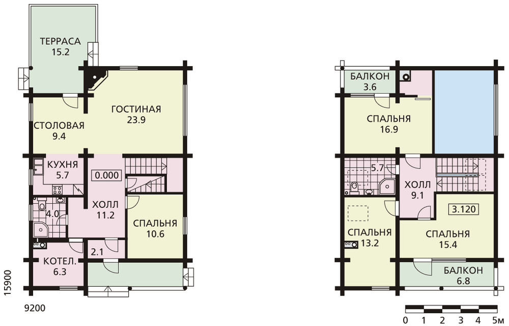 Дом из оцилиндрованного бревна, рациональный по планировке, может служить теплой дачей, но может стать и коттеджем для постоянного проживания для семьи из 4-5 человек. Найдется место в доме и для приема и размещения гостей. От своего предшественника, проекта J-1627-0, он отличается отсутствием небольшой террасы с дворового фасада. В остальном же планировка этих домов идентична. На первом этаже расположены кухня, столовая, просторная гостиная, спальня, которая может использоваться и как кабинет, и техническое помещение. Второй этаж отдан под четыре спальни, две из которых имеют выход на балконы.