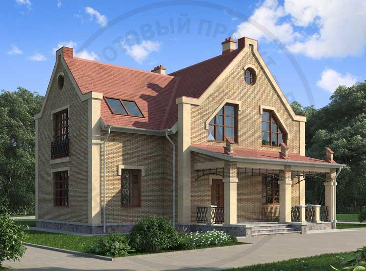 Респектабельный двухэтажный коттедж изыскан по архитектуре, удобен по планировке. В доме два этажа, второй этаж мансардный. При том, что дом не велик по площади планировка включает шесть жилых комнат, четыре из которых спальни мансарды, гостиная и гостевая расположены на первом этаже. Большая разновозрастная семья здесь разместиться с комфортом и без стеснения. Просторная веранда, выходящая на дворовой фасад - приятное дополнение этой планировки.