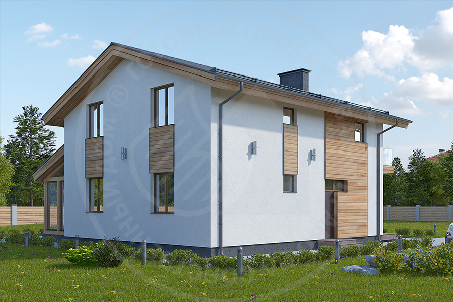 Этот проект в последние годы лишь за счет публикации на сайте www.homeplans.ru успел стать подлинным бестселлером. Причина тому – по-настоящему безграничные возможности для реализации задач разных заказчиков в пределах заданного компактного объема этого дома. Мы изначально заложили в проект множество идей и предпосылок для его дальнейшего развития. Остальные нам были предложены вами, что привело, в частности, к рождению вариантов проекта 3208-1 в кирпичной облицовке, 3208-2 – мы исключили веранду и сделали чуть иное решение входной группы и котельной. А также 3028-2 с отделкой фасада клинкерной плиткой и без веранды. Данные проекты пока не представлены на сайте.
