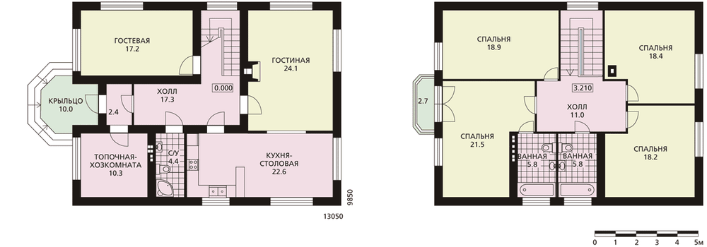 Экономичный и вместительный дом, планировка которого лаконична и включает традиционные зоны и группы помещений. Входная зона с прихожей, лестницей на мансарду переходит в просторную гостиную. Кухня-столовая и гостевая комнаты разнесены в разные части дома. В мансардном этаже расположены четыре спальни и две одинаковых по площади ванные комнаты.