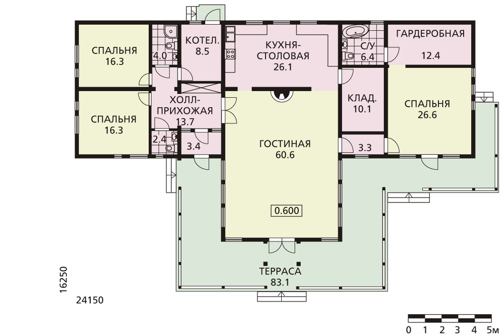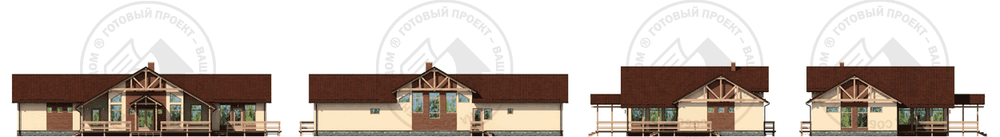 Просторный каркасный коттедж, экономичный в строительстве. В основном варианте запроектирован монолитный железобетонный фундамент, но существует также вариант фундамента на винтовых сваях диаметром 108 мм. Планировка понятна и рациональна. Ядро дома – просторная гостиная с камином, сообщающаяся с кухней-столовой. В обоих крыльях дома находятся спальни, санузлы, подсобные помещения. А обширная терраса позволит проводить время большой компанией на свежем воздухе.