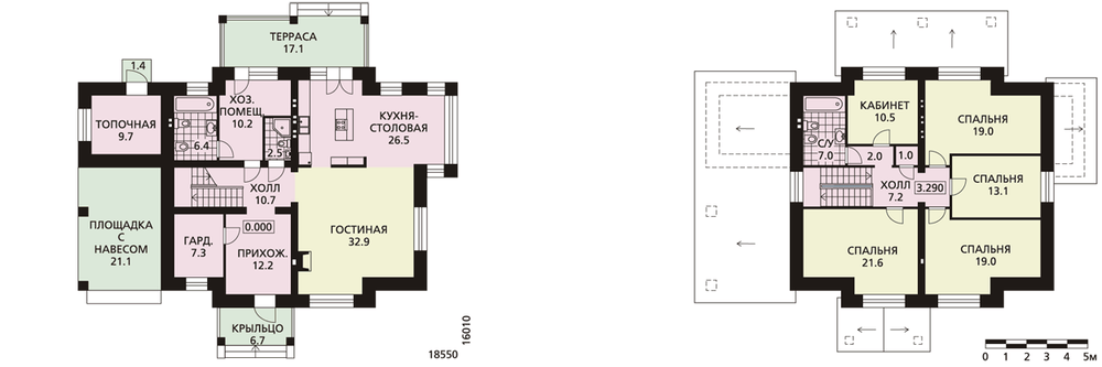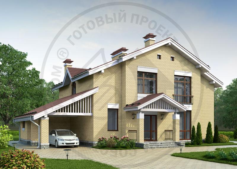 Двухэтажный современный особняк, изысканный, комфортабельный и в то же время максимально рациональный. Внутренняя планировка логичная и удобная. Из небольшого холла первого этажа можно попасть в гостевую часть дома, а также в технический блок и хоз.помещения. Кухня-столовая и просторная гостиная с камином образуют единое пространство. Для автомобиля предусмотрен навес. На втором этаже вокруг лестничного пролета расположены четыре спальни, кабинет и просторная ванная комната.