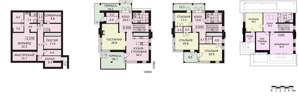 В доме три полноценных этажа и эксплуатируемый цоколь, в котором расположены в основном технические помещения. Гаражей для автомобилей и садовой техники в этом проекте, в отличие от своего оригинала - проекта N-3006-0 - нет.