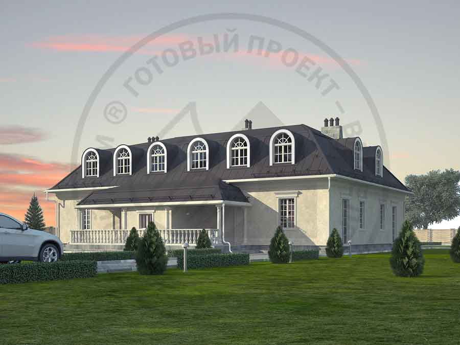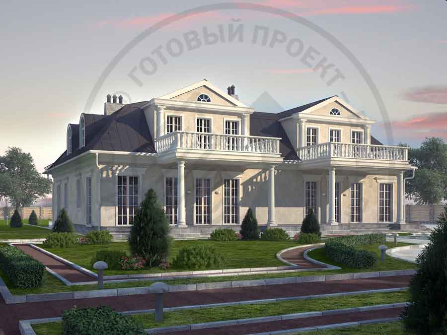 Коттедж спроектирован в классическом стиле и выглядит торжественно, но не громоздко. Фасады не перегружены деталями и тщательно прорисованы. Планировка дома, напротив, разработана для комфортной современной жизни. По сути это таунхаус на две семьи. На первом этаже находятся кухня-столовая, гостиная с камином и кабинет, который при необходимости может стать жилой комнатой. На втором этаже – три спальни, одна из которых имеет выход на балкон, и две ванных комнаты. Во второй половине дома те же помещения расположены зеркально.