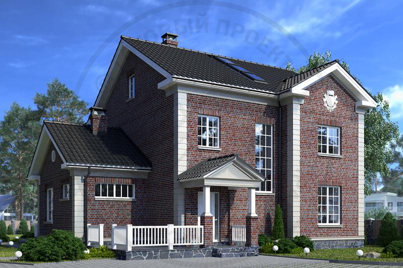 Фасады решены в стиле небольшой английской усадьбы с традиционным кирпичом в качестве отделочного материала. Планировка двух полноценных этажей и мансарды по-своему уникальна – мало в каком доме находится место для 4 спален с 4 санузлами при том, что гостиная и кухня-столовая очень просторны. Но дом спроектирован для постоянного проживания и рассчитан на долгий срок эксплуатации с учетом меняющегося состава семьи его жильцов. И если на момент строительства обилие помещений покажется излишним, от многих перегородок можно запросто отказаться. Этому способствует конструктивная схема здания с продольными несущими стенами.
